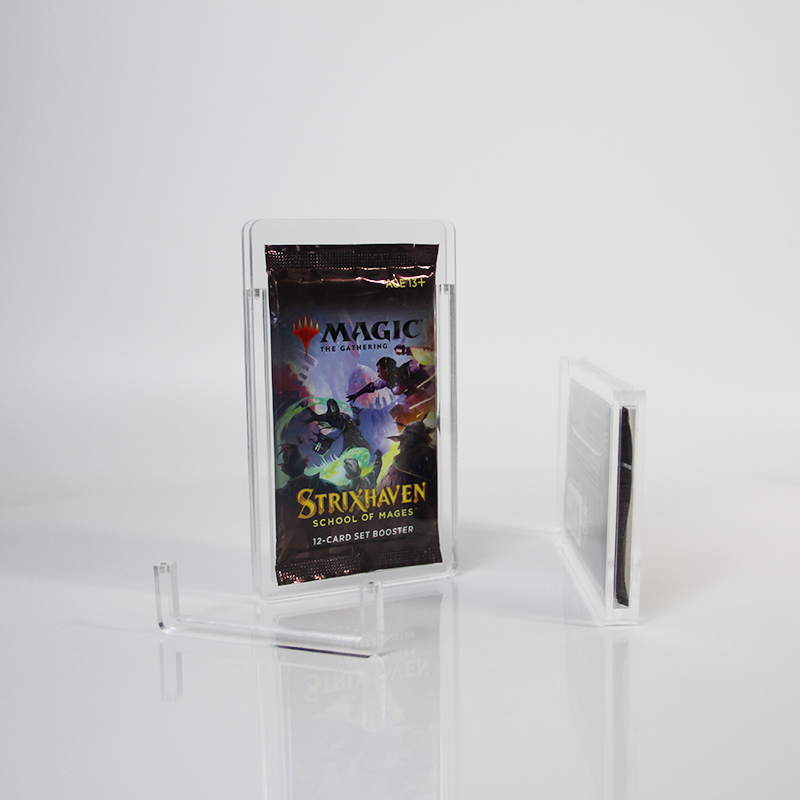 Sirve como un herramienta de visualización discreta Su diseño delgado y transparente permite que la ilustración del sobre sea el centro de atención, ideal para vitrinas de escritorio o estanterías de colección. Además, su ajuste universal admite múltiples tamaños de sobres de MTG (Set/Draft), y la tapa de cierre a presión permite... acceso fácil y seguro al paquete cuando está listo para abrir, equilibrando la conservación a largo plazo con la usabilidad práctica.