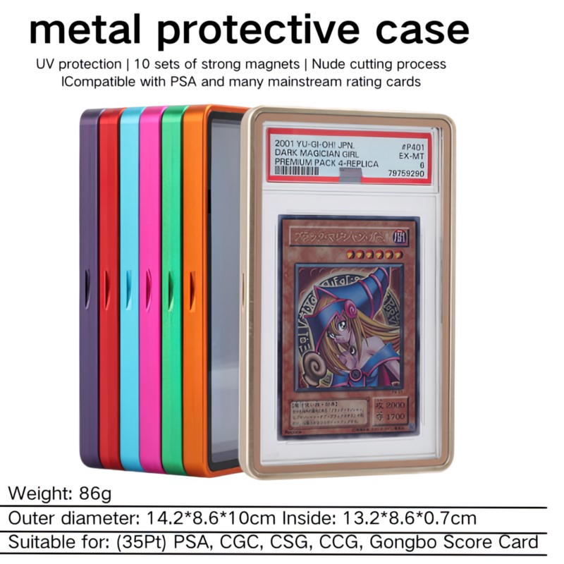 Cuenta con un marco de aluminio resistente y un cierre magnético seguro, que protege las tarjetas durante el almacenamiento, el envío o la exhibición. La capa de protección UV garantiza esto.