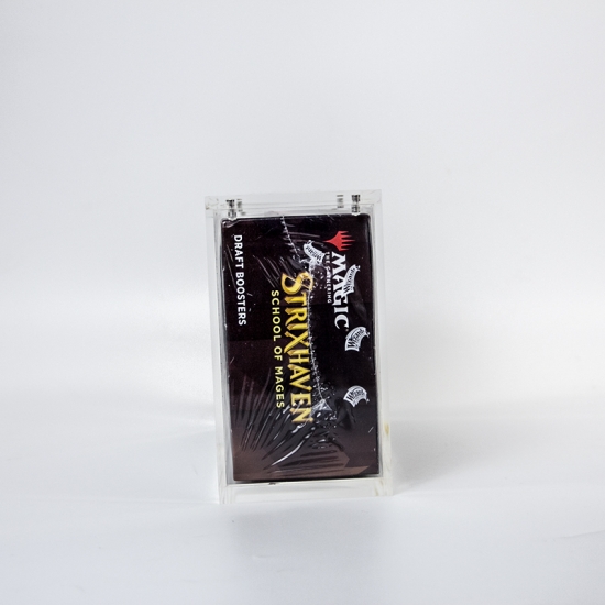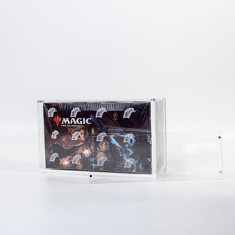 La función principal de este estuche acrílico es proteger las cajas selladas de sobres de MTG: actúa como barrera contra daños ambientales (polvo, arañazos, golpes accidentales) para preservar su valor como artículo de colección. También sirve como herramienta de exhibición, permitiendo a los coleccionistas exhibir sus cajas de sobres de MTG de forma limpia y atractiva en estanterías o expositores. Además, organiza las cajas selladas de forma ordenada, evitando que se dañen por apilarlas o acumularlas.