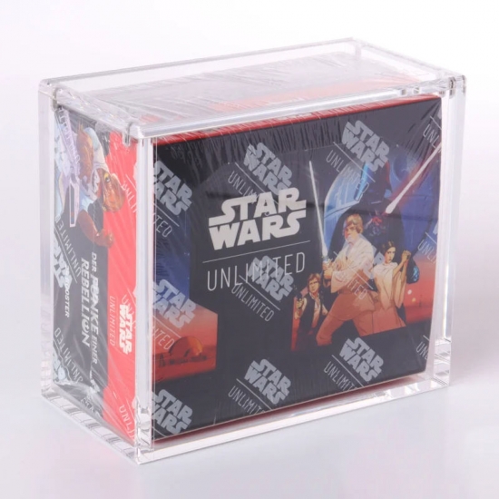 Los coleccionistas serios comprenden la importancia de proteger los productos sellados. Nuestro Expositor acrílico para caja de sobres de Star Wars Unlimited Está diseñado para brindar protección y presentación sin comprometer la visibilidad.