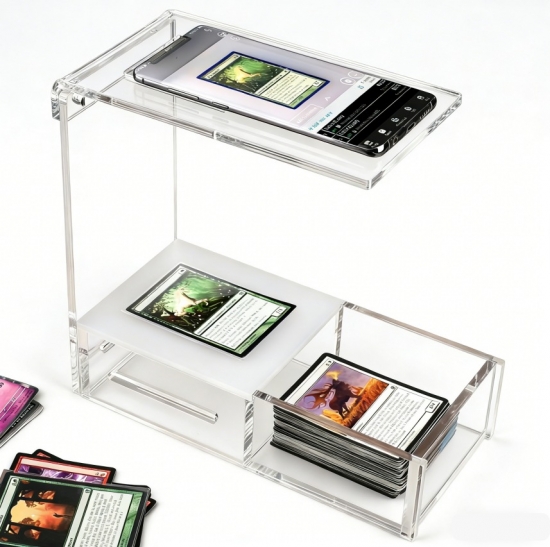 El Soporte para escáner de tarjetas Card Slinger MTG Diseñado para escanear grandes volúmenes de tarjetas con rapidez y consistencia. Diseñado para tiendas de tarjetas coleccionables, revendedores y coleccionistas profesionales, mantiene las tarjetas perfectamente alineadas para un rápido reconocimiento mediante aplicaciones de escaneo y sistemas de inventario.